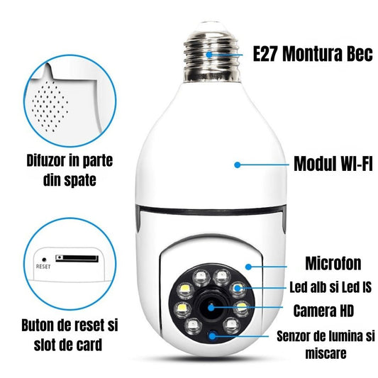 Cameră de Supraveghere 360° Wi-Fi – Vizibilitate Completă, Control de pe Telefon