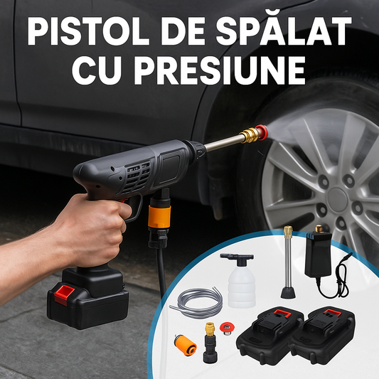 Pistol de Spălat cu Presiune Portabil cu Acumulator, 2 Baterii