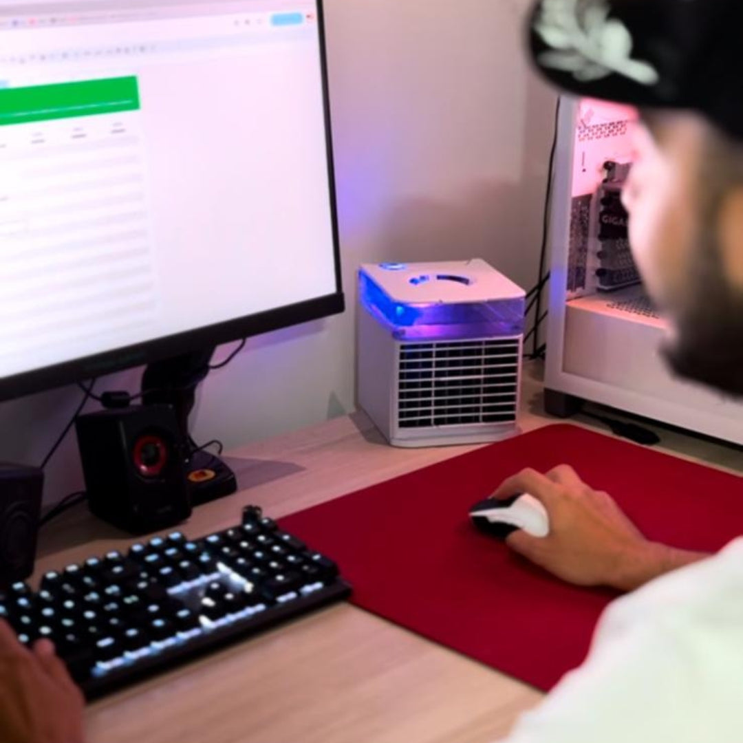 Acest mini aparat de răcire nu doar că reduce temperatura aerului, ci și adaugă umiditate, îmbunătățind calitatea aerului și prevenind uscăciunea. Este deosebit de benefic în zonele cu climă aridă sau iarna, când încălzirea usucă aerul din locuință.