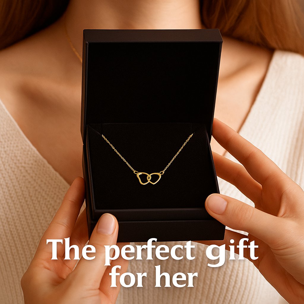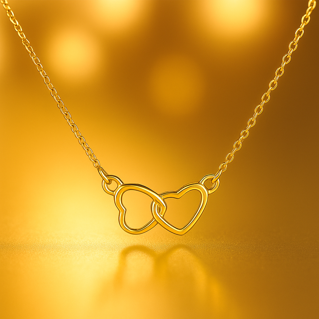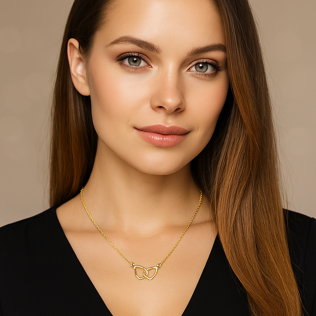 Colierul Dublu Inimă de Aur™ este mai mult decât o bijuterie – este un simbol al legăturii care unește două inimi pentru totdeauna.