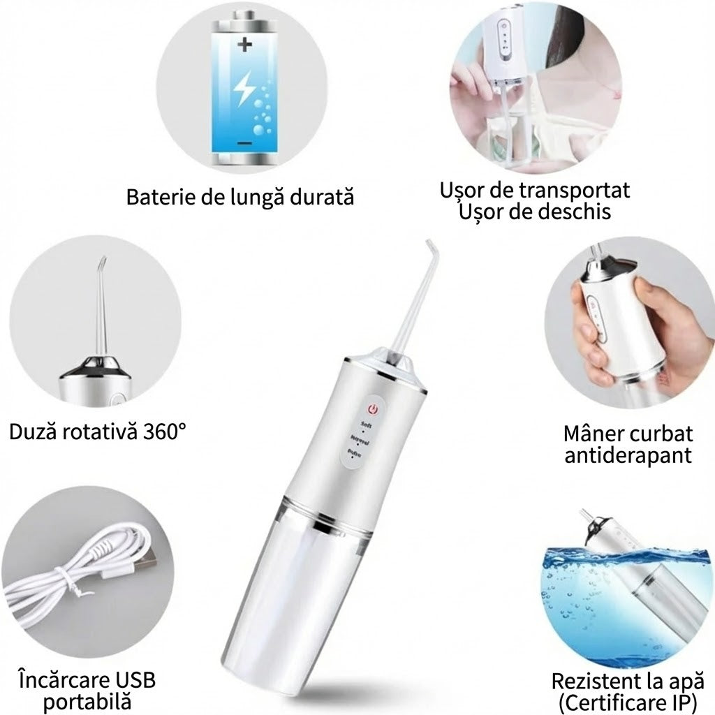 Irigator Bucal – Elimină mirosurile neplăcute din gură (4 duze gratuite)