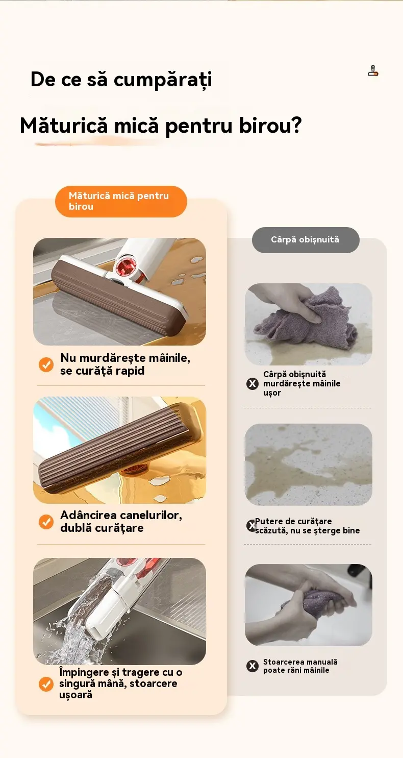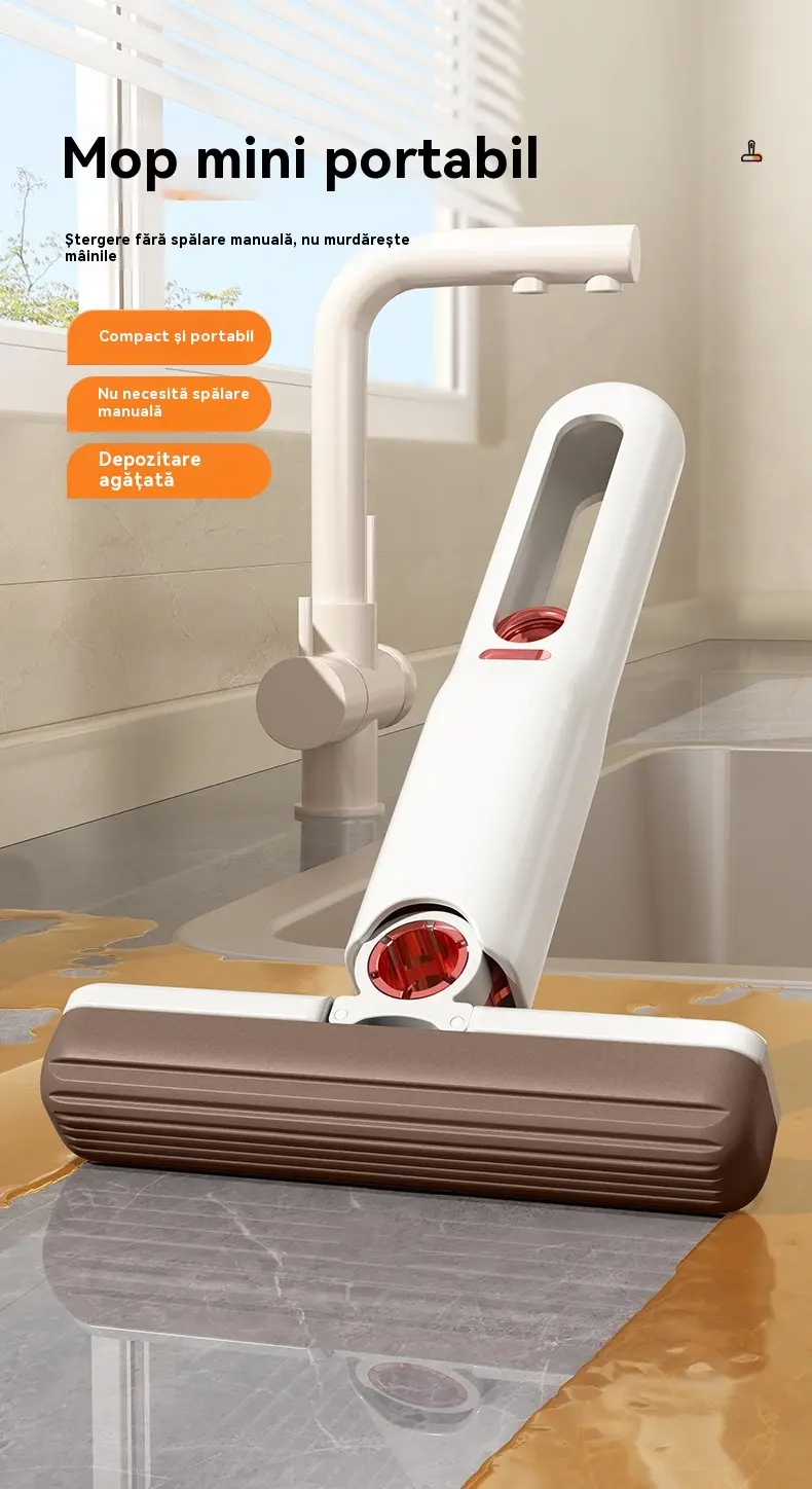 ✨ Mop Mini Absorbant – Curățare Rapidă, Fără Efort, Stoarcere Automată ✨